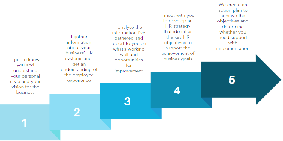 My process is designed to take your business beyond HR compliance and have a clear path for creating a great business culture with happy and high performing employees. This is how it works: